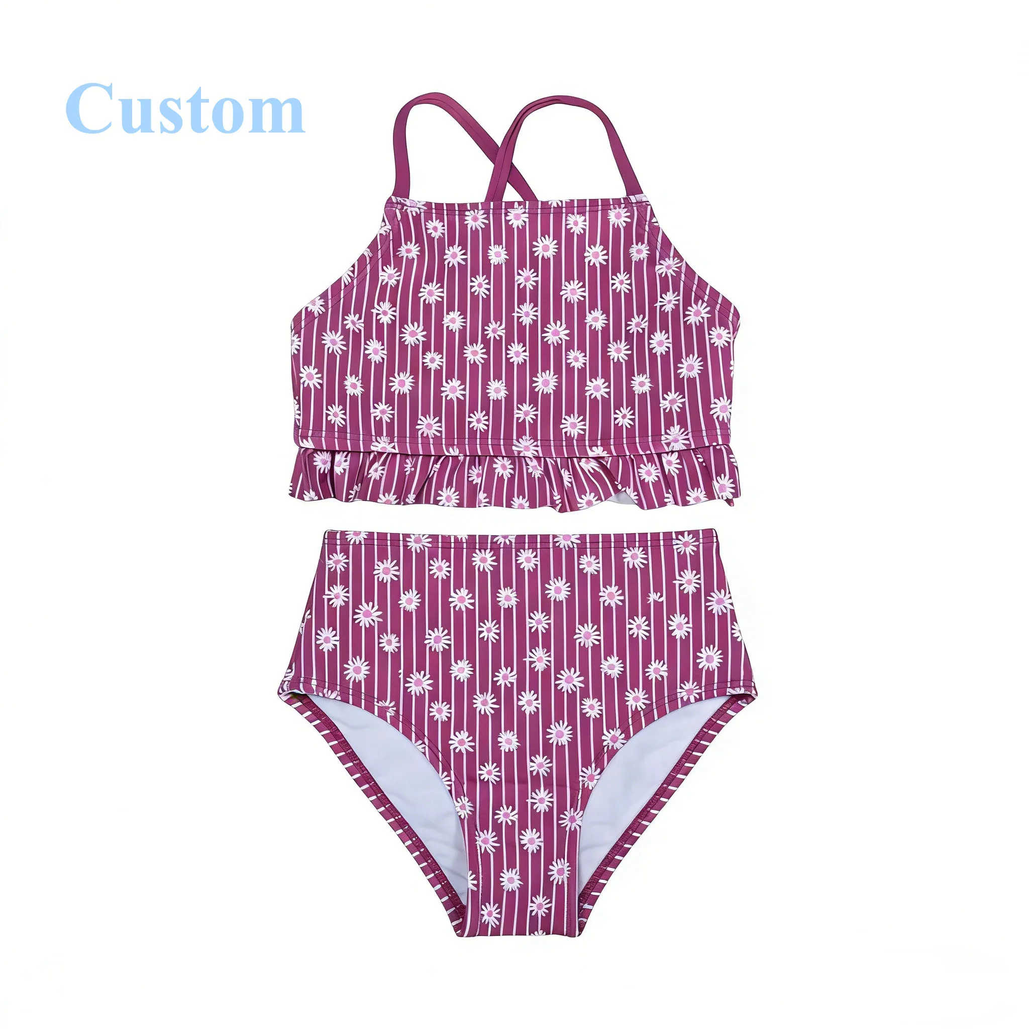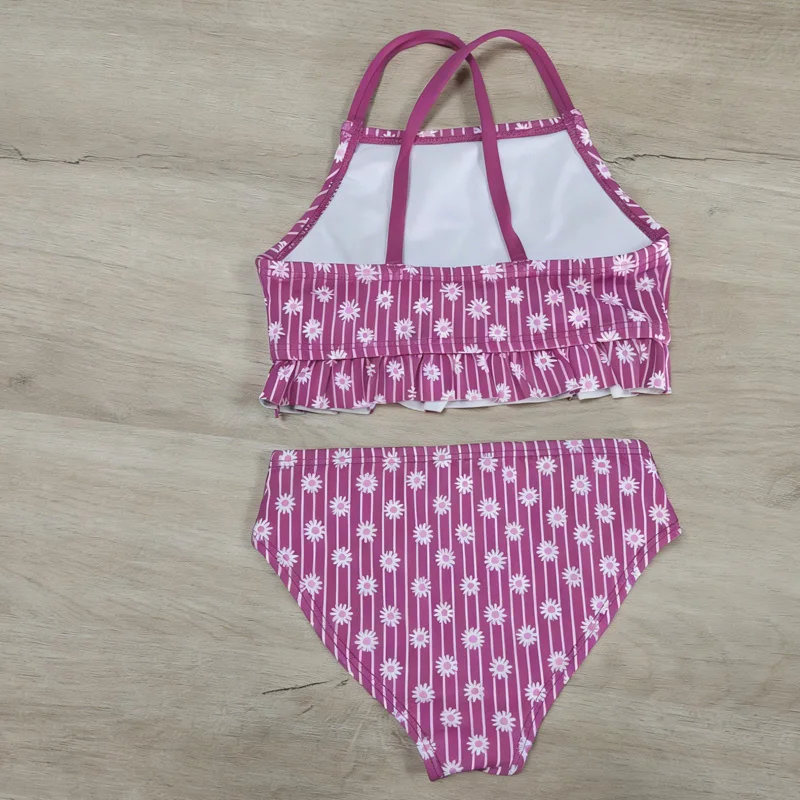 Cute Two-Piece Tankini Swimsuit Set for Kids Breathable Girls Swimwear with Ruffle Details Custom Floral Design Bathing Suit